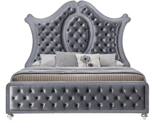 Crown MarkGiovani Collection by Crown Mark Furniture Dark Silver finish Upholstered headboard and footboard with button tufting details Winged posts and si...