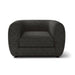 This compact living room ensemble is full of welcomed surprises. The tall arms and low back is an obvious homage to the tuxedo style, but the bulbous shape and smoother lines is a unique twist taking inspiration from the modern era. Underneath the seat cushions are high density foam, making firmer seats than one would expect for the shape that it is in. Finally, soft boucle fabric wraps around the whole piece highlighting a certain air of elegance and quiet class.