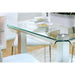 Richfield II Silver/Chrome Counter Ht. Table, 39 3/8"L X 39 3/8"W X 36"H, 96.8lbs. Quite the attention grabber, this collection will immediately become the focal point of your home. Family and friends are sure to admire your fine taste when they lay eyes on this one-of-a-kind table. Bold posts create a sturdy base for the 12mm temp ered glass top featuring smooth, curved edges. Contrasting the thick table legs are thin chrome legs on the chairs with padded leatherette seats and backs. This set is available in both standard and counter height. Features: Contemporary Style 10mm Clear Tempered Glass Top Curved Edges Padded Leatherette Chairs Bold Legs on Table Metal/Others Silver Finish
