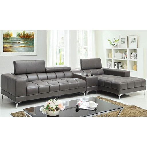 FOA WestThis optional center console with bluetooth speakers can allow you to play all of your favorite music wirelessly in your living room. Gray bonded l...