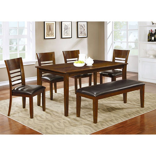 FOA WestHOLCROFT Antique Cherry/Beige Bench, 56"W X 16"D X 18 1/2"H, 35.2lbs. Bring some classy inspiration into your dining room with this warmed toned wo...