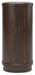- Exposed feet with faux wood finish