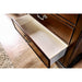 Mandura Cherry Chest, 38"W X 15 1/2"D X 52"H, 96.8lbs. Exquisite design detail and luxurious English styling makes these case goods an essential piece in that ultimate classic bedroom. An optional lingerie chest with a jewelry case on top completes this wonderful suite finished in cherry. Features: Luxurious English Style Hidden Top Drawer Intricate Accents Solid Wood, Wood Veneer, Others Cherry Finish